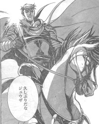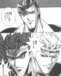 ![]() ジュウザの中に刻まれている最初の記憶―――。それは、娼館の中に立ち込める女達の匂いであった。生まれながらにして両親がいなかったジュウザは、母の妹と名乗る娼婦によって育てられていた。だがある日、彼の人生に大きな転機が訪れた。ジュウザの腹にある五車星の痣……。それは、南斗の将を守る宿命を背負った『南斗五車星』の証だったのである。噂を聞きつけた使者により、海のリハクのもとへと連れていかれたジュウザは、同じ境遇のヒューイ、シュレン、フドウと共に、厳しい修行の日々を過ごす事となったのだった。 持ち前の天賦の才により、ジュウザの実力は目を見張る速度で伸びていった。だがそれとは裏腹に、彼の中のやる気は日毎に失われつつあった。顔も知らぬ"将"のために何故こんな事をしなくてはならないのか―――。納得のいかぬ理由で、"宿命"という名の鎖に縛り付けようとする南斗のやり方に嫌気が差したジュウザは、遂に修練場から脱走してしまう。しかし、山中で一人生き延びていくには、ジュウザはあまりにも幼かった。毒を食して倒れたジュウザは、南斗の者達によって助けられ、再び修練場へと戻されてしまったのだった。 毒は抜けたものの、ジュウザの身体は日に日に衰弱していった。南斗の施しは受けない。そう言ってジュウザは、彼等の出す食事に口を付けようとしなかったのだ。だがそんな時、ジュウザの前に一人の少女が現れた。ジュウザが食べないなら私も食べない。そう言って少女は、ジュウザと共に断食を始めたのである。そして5日後……少女の覚悟に負けたジュウザは、彼女を助けるため、遂に食べ物を口にしたのだった。その少女―――ユリアの慈愛に触れたジュウザは、心に誓った。俺は一生この女を守り抜いてみせると。同時にジュウザは、その力を他の誰のために使わないことを決めた。例えそれが、自らの宿命である『将』を守るためだとしても―――。 ヒューイらの呼び止めに応じることなく、再び荒野へと足を踏み入れるジュウザ。だがその時、彼等の前に瀕死の老人が現れた。その身体に残された、抉り取られたかのような傷跡―――、その拳、泰山天狼拳の使い手を、一同は知っていた。男の名はリュウガ。ユリアの実の兄にして、ジュウザの母違いの兄であった。 己とユリアが異母兄妹であることを知らされたあの日―――。ヤケを起こし、暴れたジュウザは、牢獄の中へと閉じ込められていた。だがそんなジュウザを救い出してくれたのは、リュウガであった。雲は留まれば雨となって散る。雲は雲のままに高みを目指し、駆け上がれ―――。そう言ってリュウガは、全ての追っ手を引き受け、ジュウザを外の世界へと逃がしたのだった。ジュウザにとっては大恩のある優しき兄……。だがそれは、もはや過去のものであった。今やリュウガは、拳王軍の配下となり、残虐非道の将としてその名を轟かせていたのだった。 ![]() 凄まじい闘気を放ちながら、互いの本気の拳をぶつけ合う二人。ジュウザが変幻自在の我流拳で翻弄すれば、リュウガは天狼拳の凄まじい破壊力でそれに立ち向かう。だがその時、不測の事態が起こった。激しい戦いで崩れた建物の瓦礫が、子供の頭上に落ちてきたのである。だがその瓦礫は、ジュウザが飛び込むよりも早く、リュウガの奥義によって粉々に打ち砕かれた。それは、未だリュウガが優しさを失っていないという証……。罪無き人間を殺しながらも、天狼はその心の中で血の涙を流し続けていたのだった。再び相見えたときは必ず命を貰う。そう言い残し、去っていく兄の姿を、ジュウザはただ見送る事しかできなかった。 |
