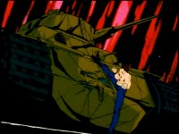 ケンが追いついてきた事を確認したサンダー軍は、広い荒野でケンを迎え撃つことにした。元スピードレーサーである技術を生かし、バイクで縦横無尽に攻撃を仕掛けるサンダー軍。だが、ケンのスピードとジャンプ力は、バイクのそれを遥かに超えていた。部下を全滅させられ、ただ一人残されるゴラス。だが、まだゴラスは奥の手を隠していた。砂漠の向こうから砂煙を上げてやってきたもの、それは戦車であった。もう人質など要らないとばかりにリン達を解放し、戦車へと乗り込むゴラスであったが・・・| [漫画版との違い] ・アニメオリジナルストーリー |